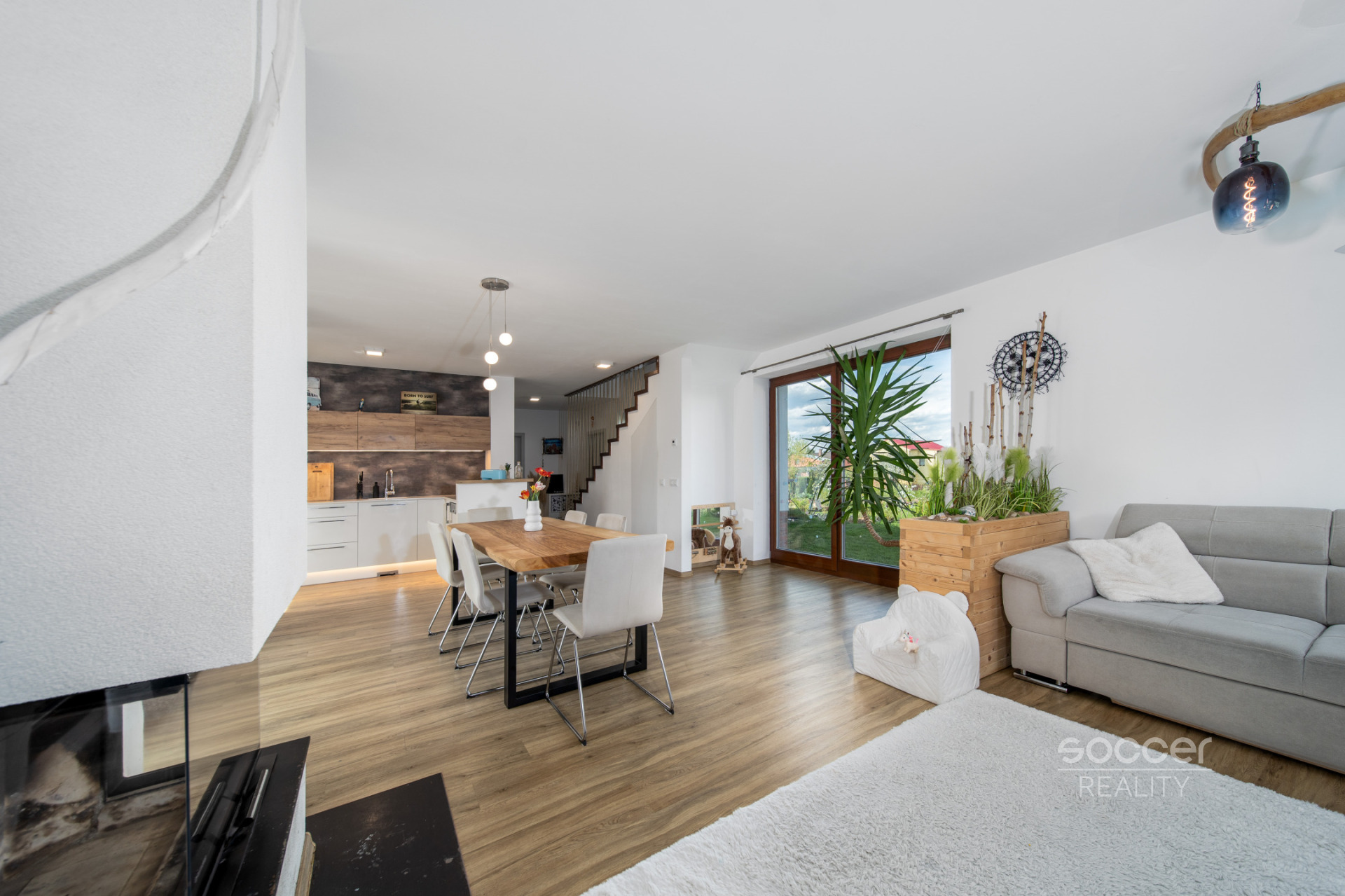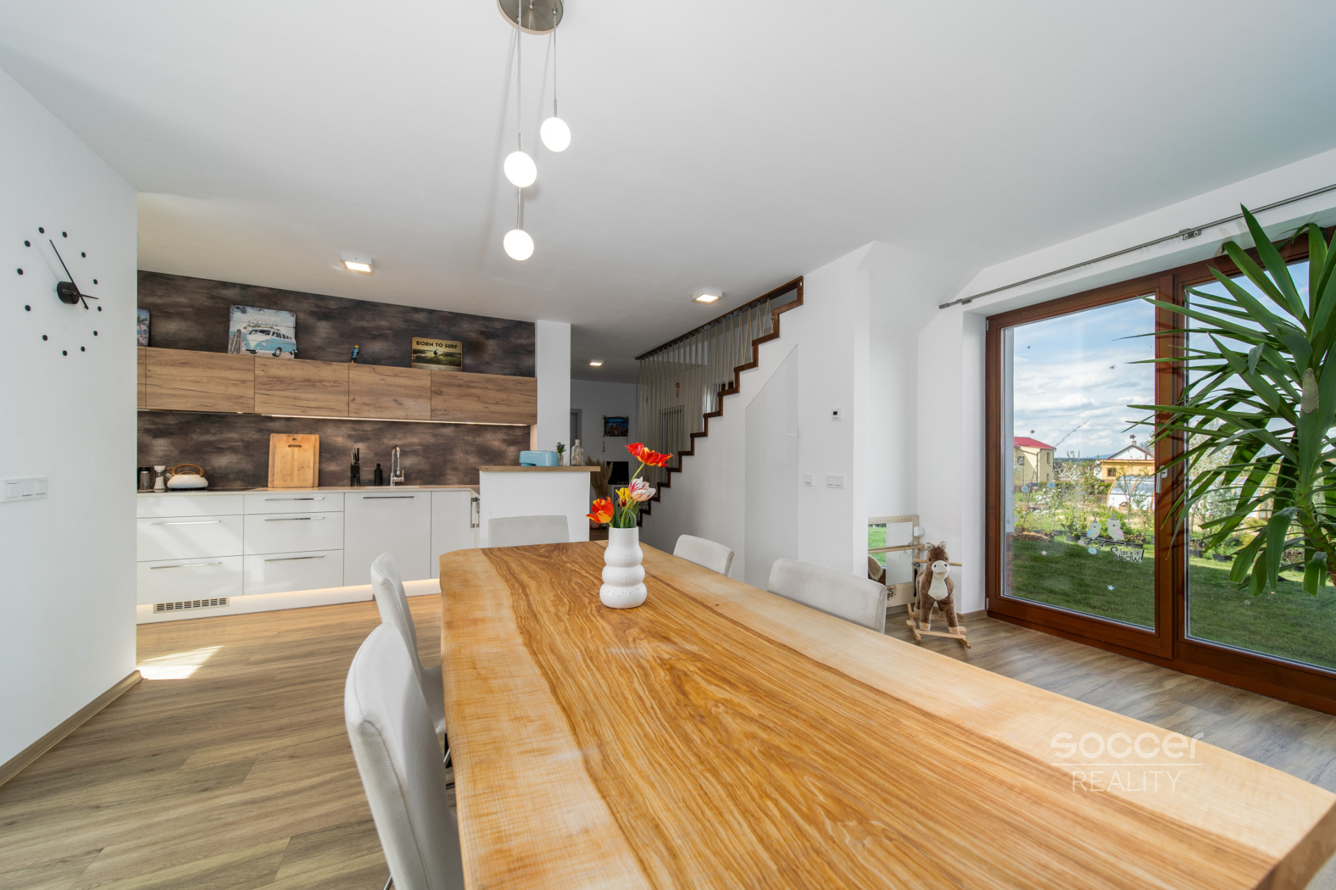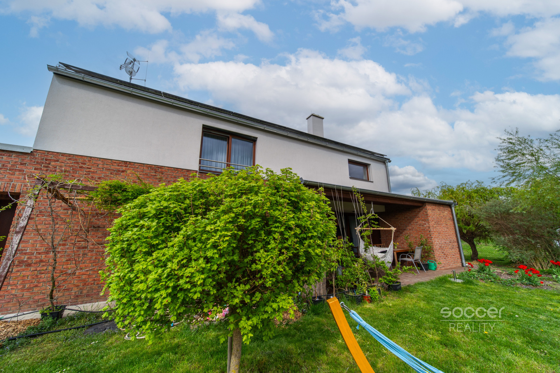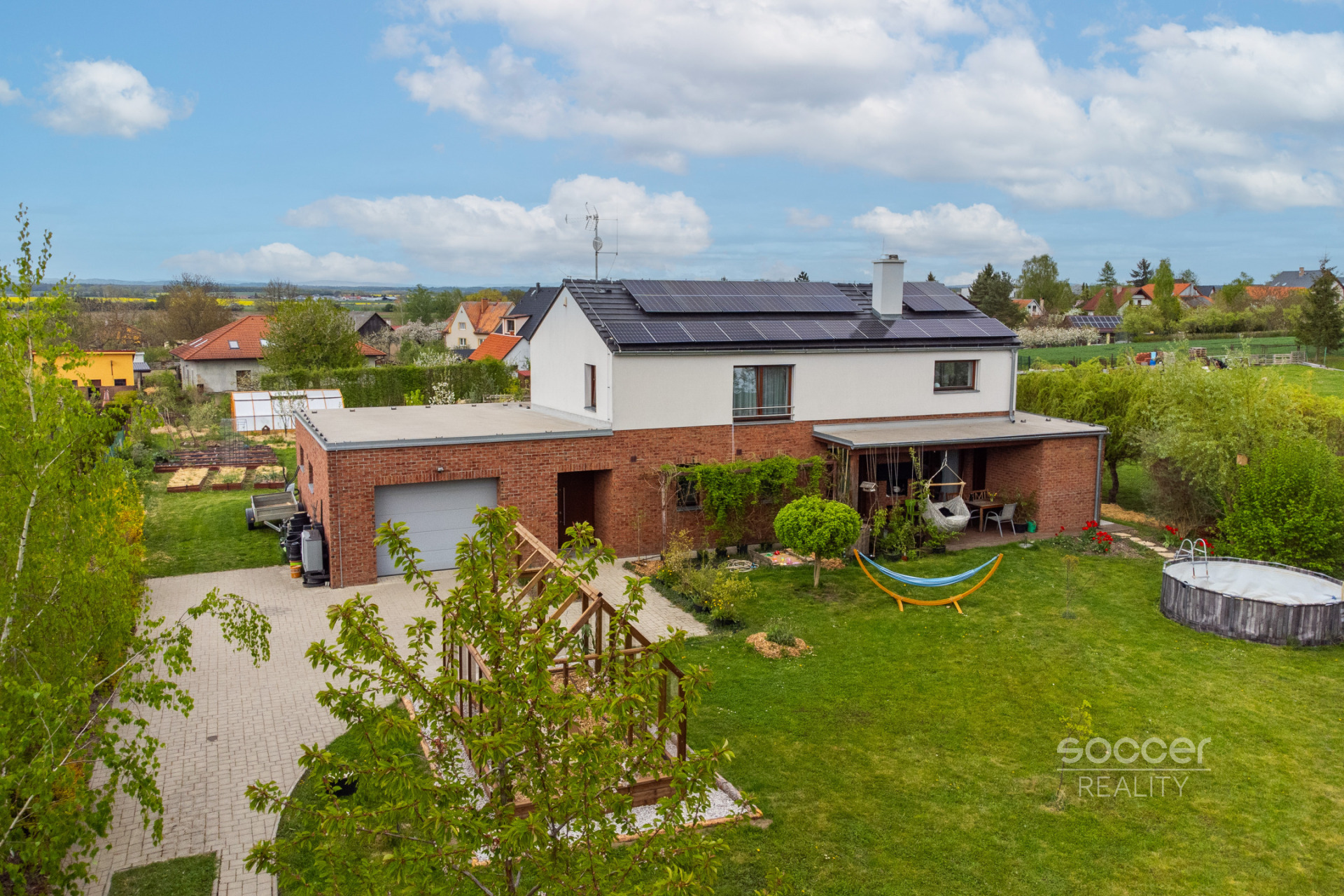Velmi vkusný dům vám poskytne velkorysé zázemí ve dvou podlažích. Dispozičně je řešen jako 5 + kuchyňský kout + dvě koupelny + terasa + dvougaráž + dva sklady. Pro celý interiér jsou charakteristické vysoce kvalitní materiály. Nadchne vás také praktické technické zázemí jako tepelné čerpadlo, krb, solární panely, studna pro závlahu zahrady. Dům je napojen na veřejný vodovod i kanalizaci, byl dokončen a zkolaudován na konci roku 2017. Díky zateplení, pokročilým technologiím a efektivním způsobům vytápění dosahuje mimořádně příznivé režie cca 3000 Kč/měsíc a pyšní se energetickou třídou B - Velmi úsporná.