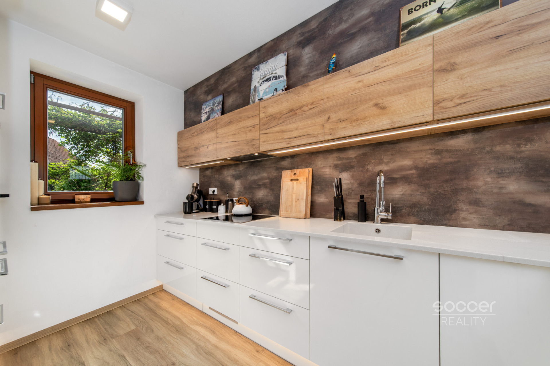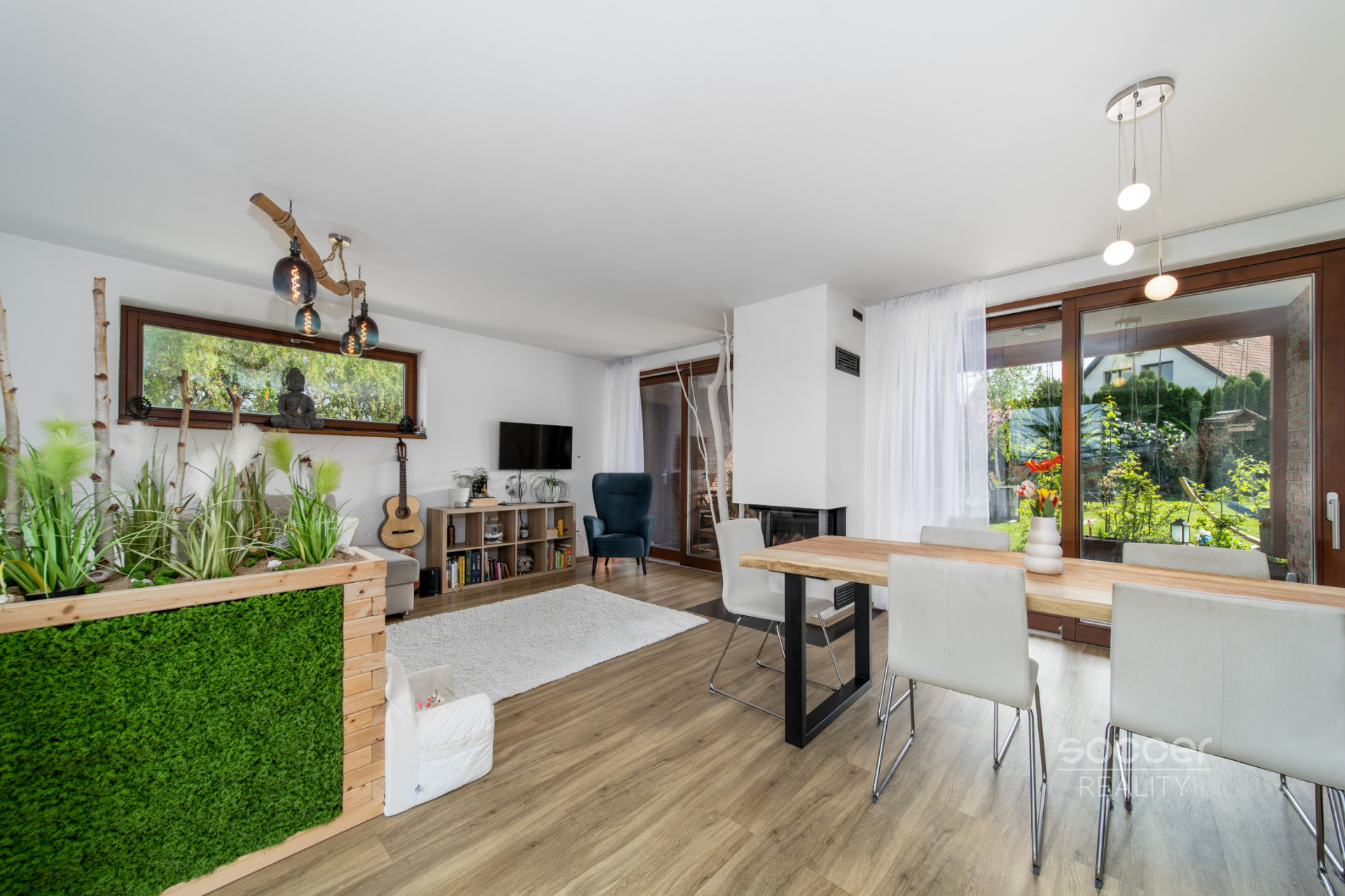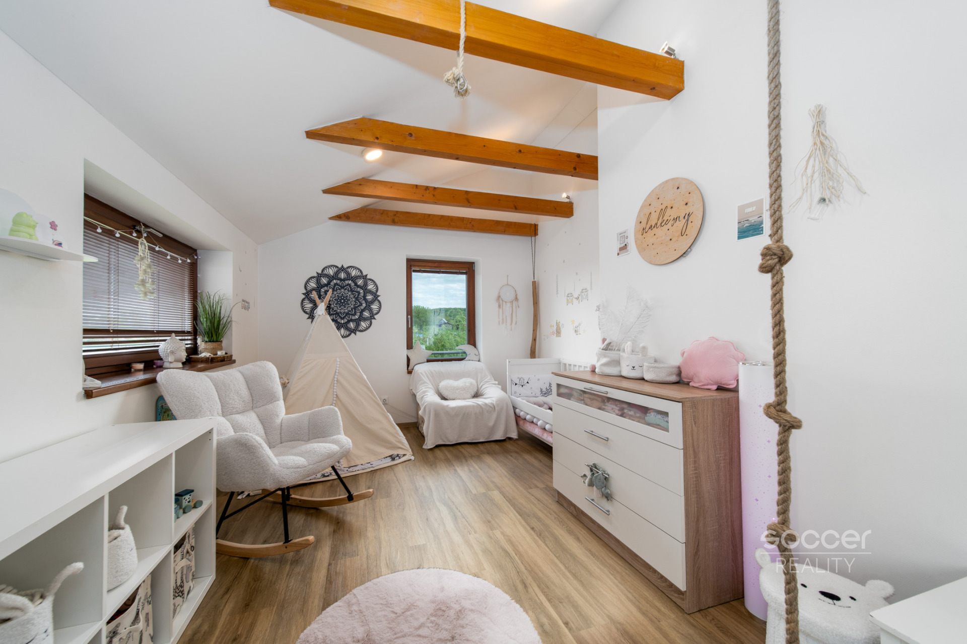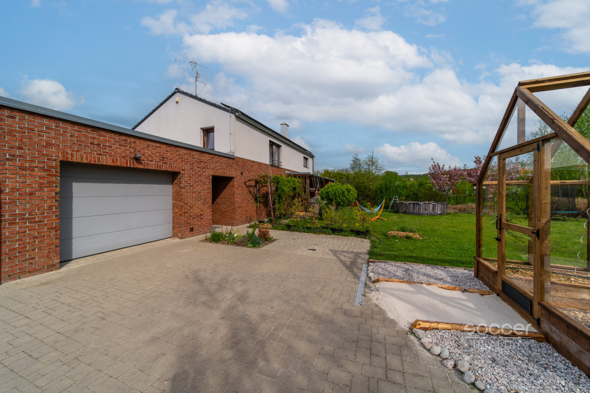 Velmi vkusný dům vám poskytne velkorysé zázemí ve dvou podlažích. Dispozičně je řešen jako 5 + kuchyňský kout + dvě koupelny + terasa + dvougaráž + dva sklady. Pro celý interiér jsou charakteristické vysoce kvalitní materiály. Nadchne vás také praktické technické zázemí jako tepelné čerpadlo, krb, solární panely, studna pro závlahu zahrady. Dům je napojen na veřejný vodovod i kanalizaci, byl dokončen a zkolaudován na konci roku 2017. Díky zateplení, pokročilým technologiím a efektivním způsobům vytápění dosahuje mimořádně příznivé režie cca 3000 Kč/měsíc a pyšní se energetickou třídou B - Velmi úsporná.