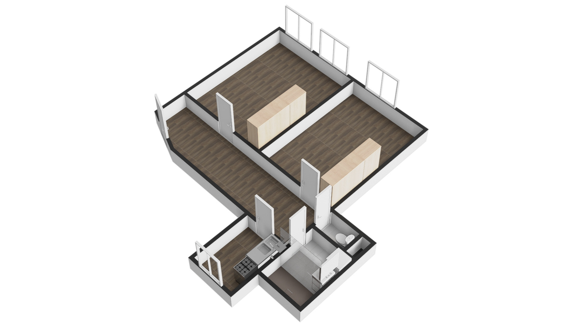 Ze vstupní chodby je přístup do obou neprůchozích pokojů. Kuchyně s kuchyňskou linkou je také samostatná.