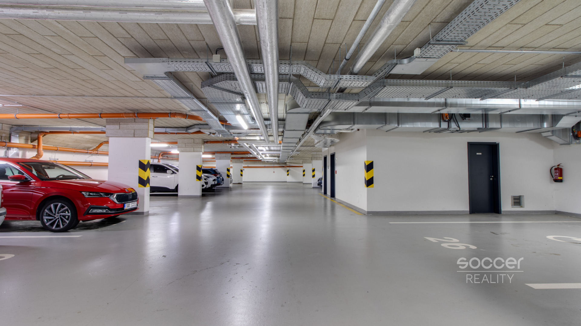 K bytu náleží také prostorný zděný sklep o velikosti 3,5 m² a vlastní garážové stání v suterénu domu, což v této lokalitě představuje obrovskou výhodu a komfort při každodenním parkování.