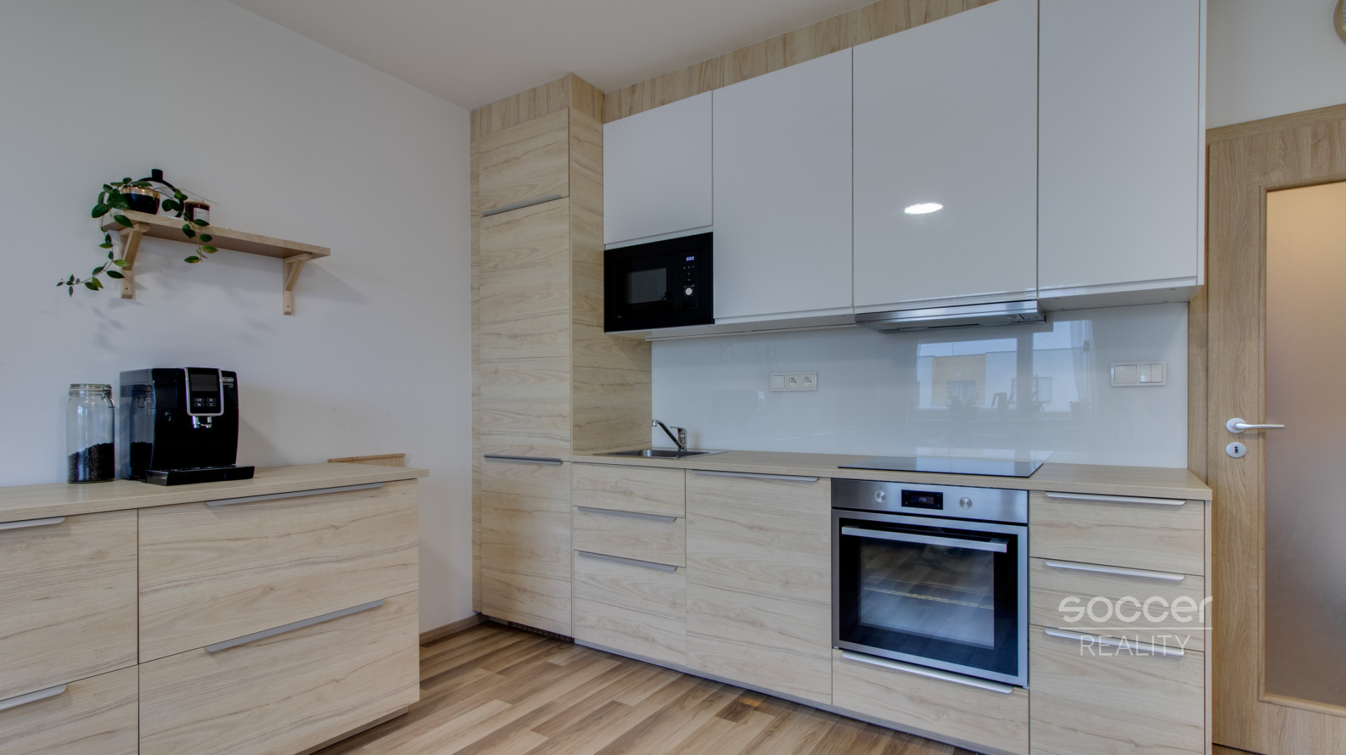 Interiér je zařízen v moderním duchu, kuchyňská linka je kompletně vybavena kvalitními spotřebiči a plynule navazuje na obývací část. Ložnice je vybavena praktickými vestavěnými skříněmi a další úložný prostor nabízí chodba s na míru zhotoveným systémem u stropu nad dveřmi. Praktické uspořádání doplňuje komora přímo v bytě, která slouží jako ideální úložný prostor pro vše potřebné. Velkým benefitem, který v letních měsících oceníte nejvíce, je instalovaná klimatizace zajišťující tepelný komfort v celém bytě.