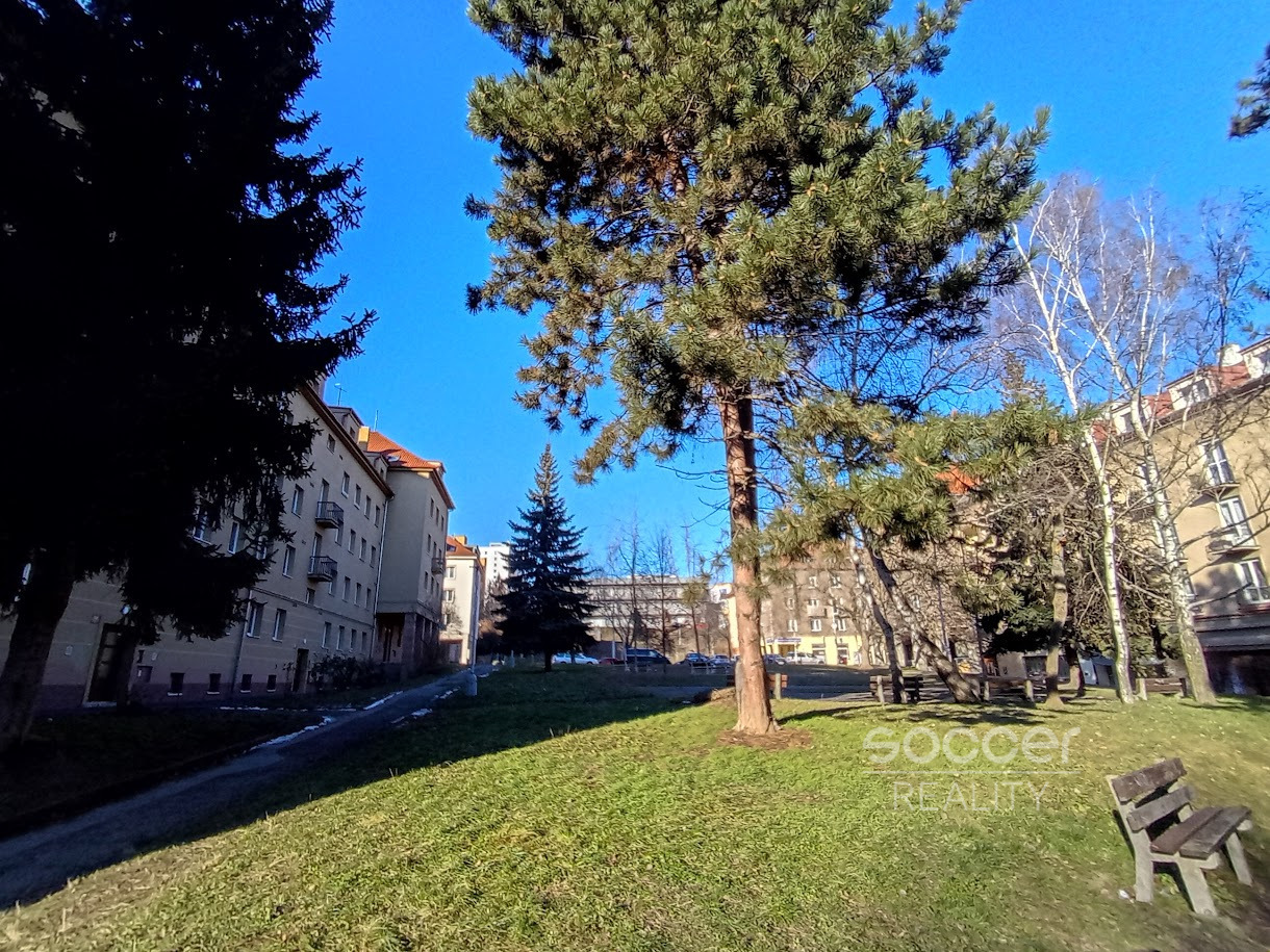 Byt s nádherným výhledem do zeleně se nachází ve třetím patře klidného cihlového domu, pouhých 300 metrů od stanice metra A – Bořislavka.