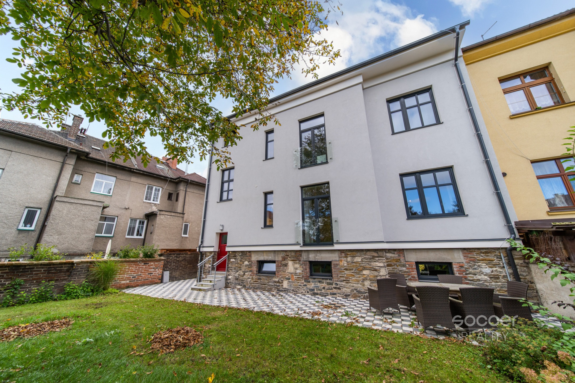 Celá nemovitost prošla velmi zdařilou a vkusnou rekonstrukcí, zachovává vzácné původní prvky s důrazem na souhru celku s designovými detaily. Interiér je vzdušný ve stylu ateliéru, citlivě rozdělený na denní obytnou a večerní klidovou část. Překrásná velká koupelna se vám sama o sobě stane relaxační zónou. Byt je kompletně vybaven vkusným nábytkem i kvalitními spotřebiči (včetně pračky a sušičky), stačí se jen nastěhovat. A potom už můžete také kdykoli odpočívat v privátní zahradě s parkovou úpravou.